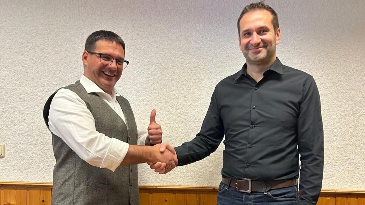 Fraktionsvorsitzender Stefan Müller (rechts) gratuliert Martin Tessling zur einstimmigen Nominierung. | Foto: Carmen Tessling2025/11/Fraktionsvorsitzender_Stefan_Mueller_rechts_gratu.jpg