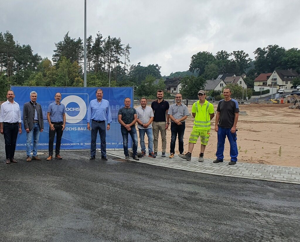 2018 wurde die alte Fensterfabrik abgerissen, 2021 beauftragte der Gemeinderat die Erschließung des Areals, nun sind die Arbeiten abgeschlossen. Bürgermeister Heinz Meyer bedankte sich bei einem Ortstermin bei den den beteiligten Firmen für die fristgerechte Fertigstellung. Meyer hob vor allem die Vorbildwirkung der Baugebietserschließung im Umgang mit Regenwasser hervor.
