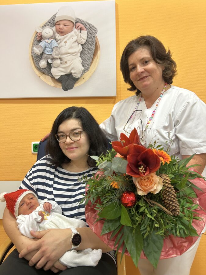 „Wir freuen uns sehr mit den Eltern und wünschen Leo und seiner Familie alles Gute“, so die Hebammen Lilly Salome Hübler und Laura Stegmeyer. Sie haben die Geburt in der Heiligen Nacht geleitet und Leo zusammen mit Dr. Muna Mohamed El-Hutmani, Ärztin in der Abteilung für Gynäkologie und Geburtshilfe, auf die Welt geholt. Für das Laufer Weihnachtsbaby gab es laut Krankenhaus vom ganzen Team einen Blumenstrauß, organisiert von Stationsleiterin Annika Steiner.
