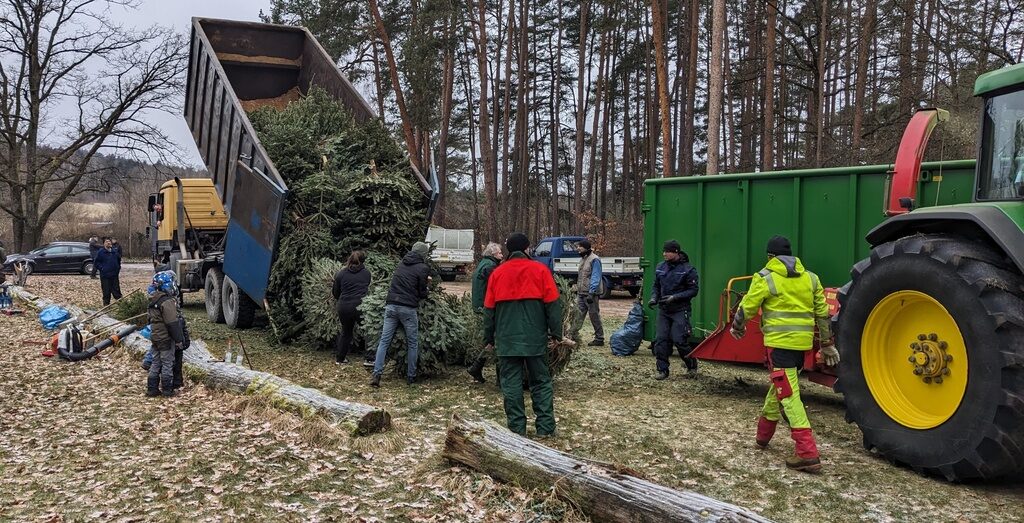 LAUF – Bei der diesjährigen Christbaumaktion des CVJM Lauf waren über 100 Ehrenamtliche im Einsatz. Sie halfen an den Sammelpunkten, auf den Transportfahrzeugen und am Freibadparkplatz, an dem die mehr als 1100 ausrangierten Christbäume geschreddert wurden.