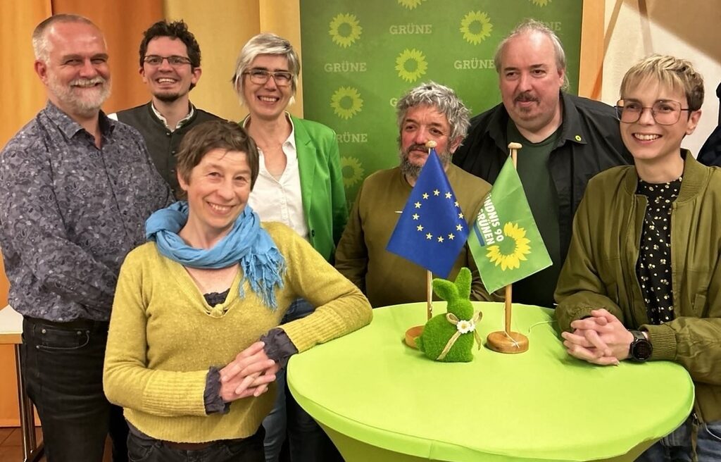 Die Europaabgeordnete der Grünen, Jutta Paulus (4. v. links), war kürzlich bei den Mitgliedern des Grünen-Kreisverbands bei einer Veranstaltung in Rückersdorf zu Gast. | Foto: privat2024/04/Jutta-Paulus.jpeg
