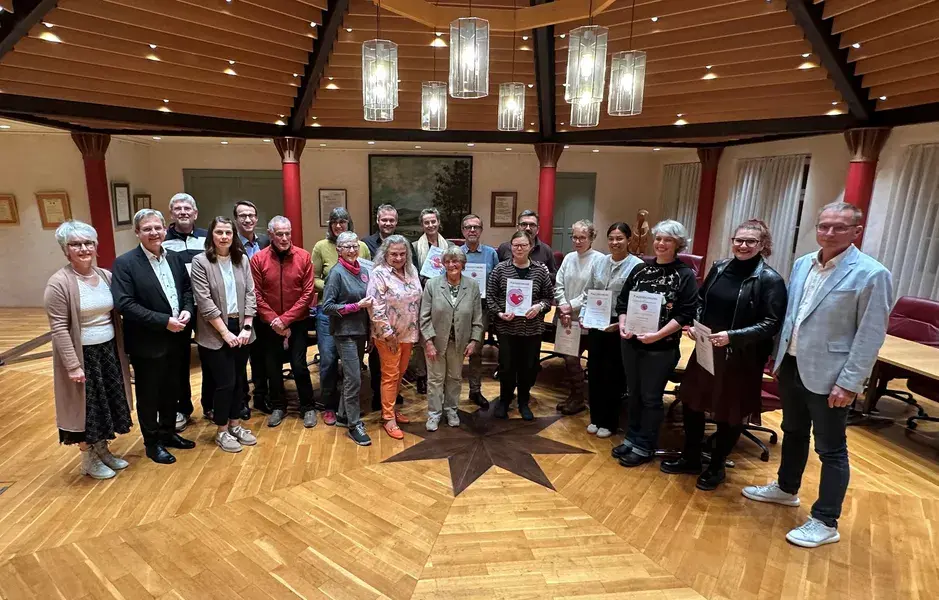 In ihrer Ansprache machte sie außerdem auf einen aktuellen Missstand aufmerksam: „Am Bahnhof gibt es keine öffentliche Toilette – das darf auf Dauer nicht so bleiben.“ Danach überreichten Ilg und Henke die Urkunden und die neuen Plaketten für 2025. Das Symbol darauf zeigt ein rotes Herz mit zwinkerndem Auge – ein freundlicher Hinweis darauf, dass der ausgezeichnete Betrieb besonders seniorenfreundlich ist.