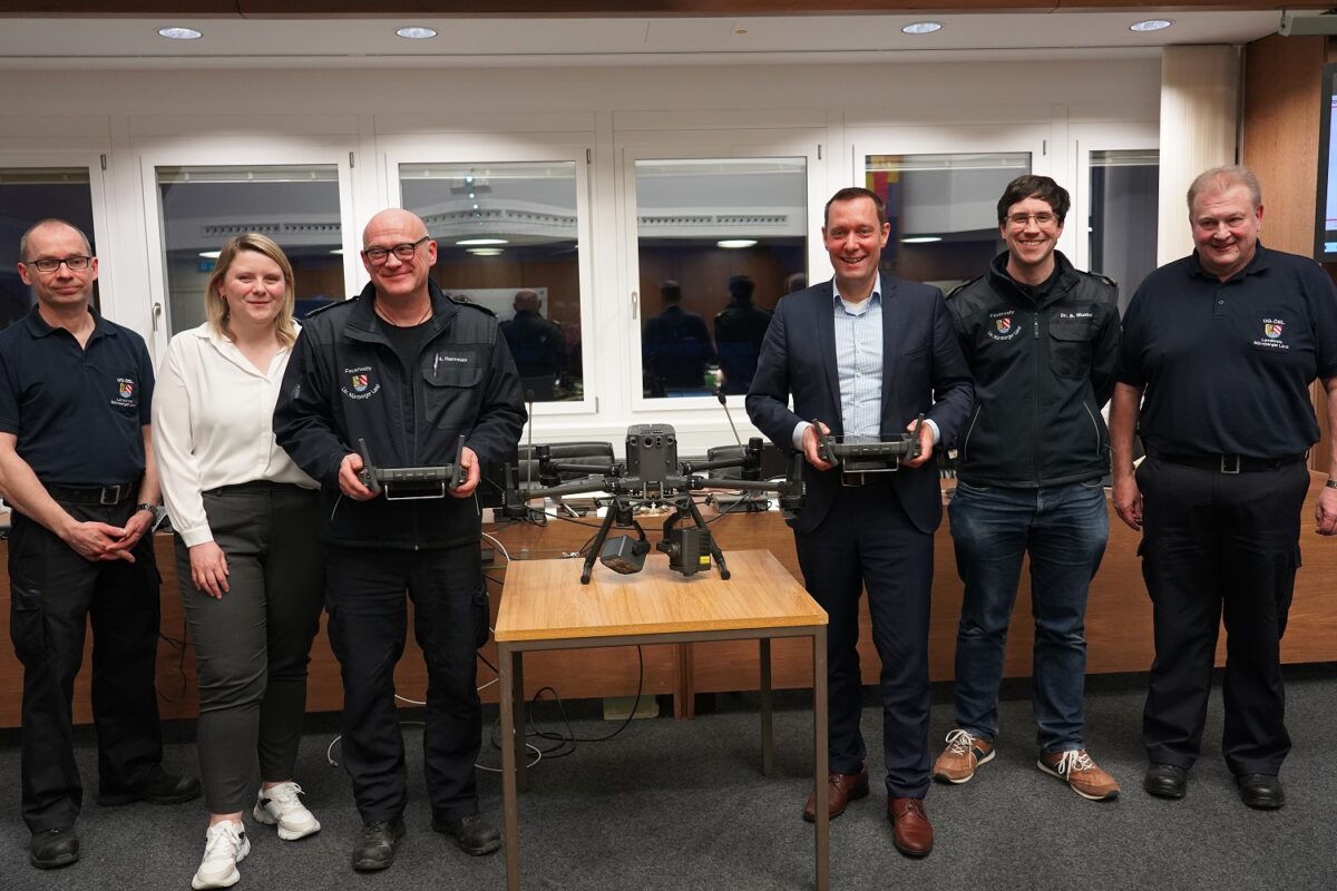 Im Katastrophenfall braucht es neben gut ausgebildetem Personal auch funktionsfähiges Equipment. Für den professionellen Blick von oben sorgt eine neue Drohne, die das Landratsamt für die UG-ÖEL beschafft hat. Die Unterschiede in der Bildqualität von der neuen zur alten Drohne seine beeindruckend, unterstrich Landrat Armin Kroder bei der Übergabe des Gerätes. In der Praxis wird die Drohne zum Beispiel bei der Vermisstensuche eingesetzt. Kroder weiß „der Katastrophenschutz ist in der heutigen Zeit wichtiger denn je und das Landratsamt ist als Katastrophenschutzbehörde hier besonders in der Pflicht.“