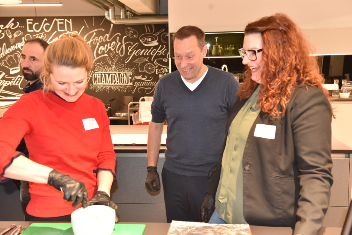 Unter Anleitung von Guido Lehner, ehemaliger Geschäftsführer des Jobcenters Nürnberger Land, bereiteten sie in entspannter Atmosphäre kulinarische Köstlichkeiten zu. Dabei ergaben sich angeregte Gespräche über eine zentrale Frage: Wie kann eine familienfreundliche Personalpolitik zur Fachkräftesicherung beitragen?