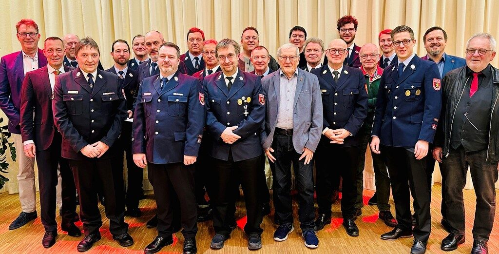 „Wenn etwas passiert, können sich die Altdorfer auf ihre Wehren verlassen“, betonte Landrat Armin Kroder (2. Reihe, 1. von links) anlässlich der Ehrung. | Foto: Susanne Voß2025/01/e458378fdf781e654eb2f90d3e930852516d7f8f_max1024x.jpg
