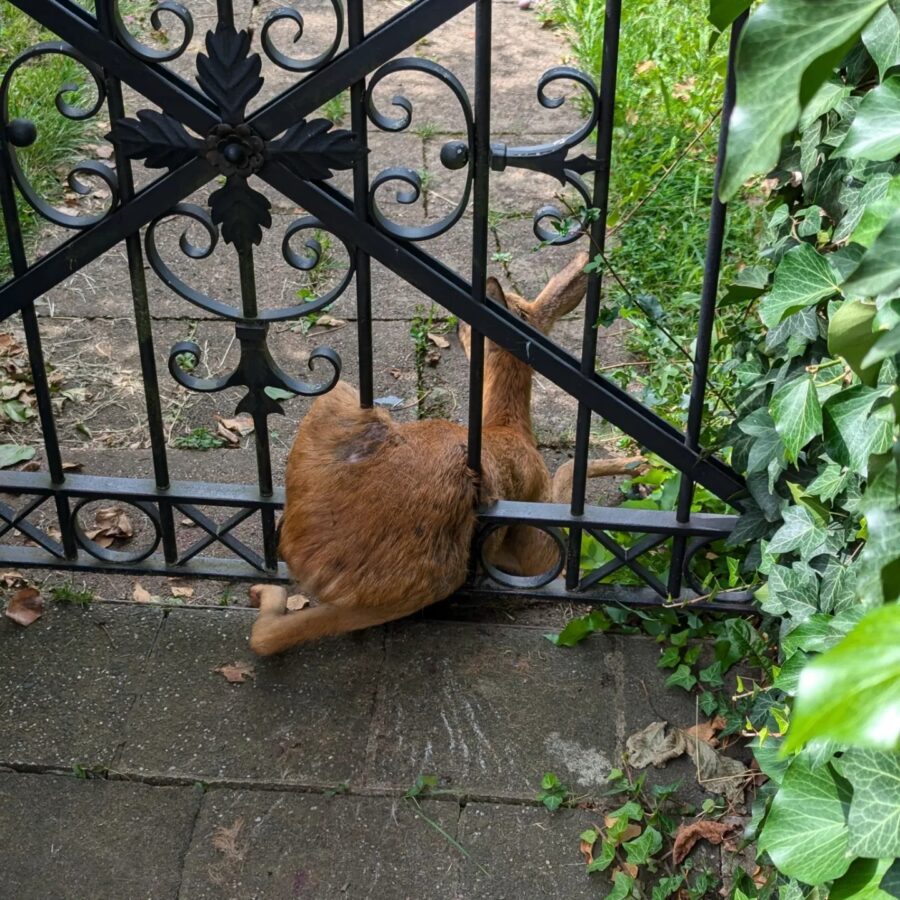 Das Reh hatte sich in einem Gartentor verfangen und konnte sich selbst nicht mehr befreien. Wie die Feuerwehr Happurg mitteilt, hat sie zunächst Rücksprache mit dem örtlichen Jagdpächter, Dr. Adam, gehalten und das weitere Vorgehen besprochen.