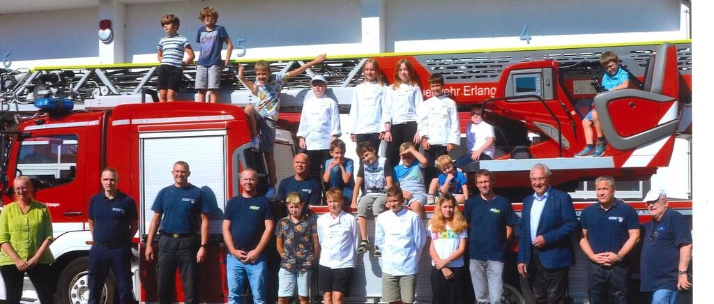 HERSBRUCK/ERLANGEN – Die Hersbrucker Miniköche waren vom Bayerischen Innenminister Joachim Herrmann und dem Erlanger Stadtbrandrat Friedhelm Weidinger zu einem erlebnisreichen Tag bei der Feuerwehr Erlangen eingeladen. Schon bei der Verleihung des Bayerischen Engagiert-Preises 2023 in der BMW Welt München hat Herrmann als Dankeschön den Miniköchen für ihre sozialen Einsätze einen Gutschein für einen Besuch bei der Hauptfeuerwache überreicht.