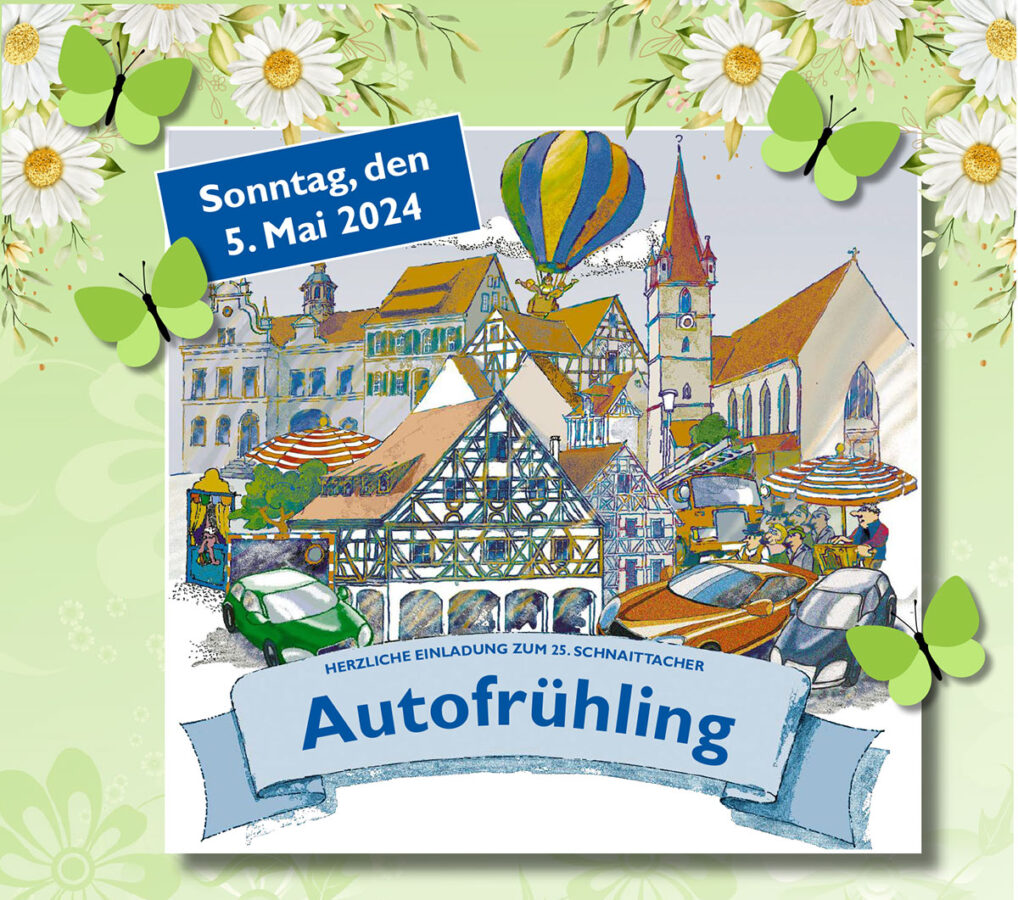 Die Marktgemeinde Schnaittach und die Werbegemeinschaft Schnaittach e.V. laden Sie herzlich zum Besuch des 25. Autofrühlings ein. Ein interessantes Angebot an Fahrzeugen führender Marken sowie ein unterhaltsamer Tag mit vielen Attraktionen lohnen einen Besuch für Jung und Alt und für die ganze Familie.