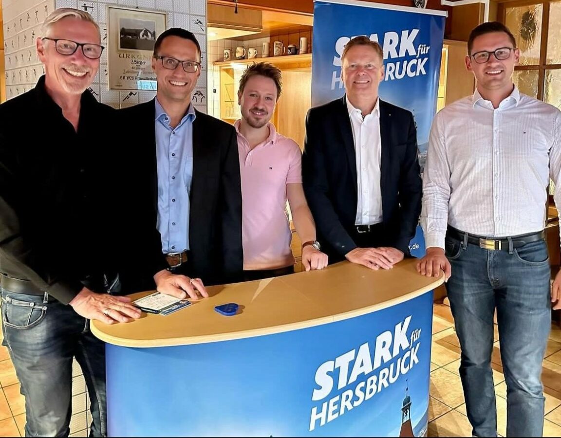 Götz Reichel (Vorsitzender der CSU Hersbruck), Harald Kiesl (Referent), Hendrik Nijhuis (Referent), Norbert Dünkel (Landtagsabgeordneter) und David Benaburger (Digitalbeauftragter der CSU Hersbruck, von links).