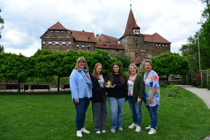 Kunigunden Antonia Franke (2. von links) und Sawsan Mardini (Mitte) mit den Festleiterinnen Irene Mierzwa (2. von rechts), Doris Trini-Maschler (rechts) und Julia Bitter (links), die im kommenden Jahr in die Festleitung aufrückt. | Foto: Andreas Kirchmayer/Stadt Lauf2025/05/Kunigunden-Foto-Kirchmayer-scaled.jpg