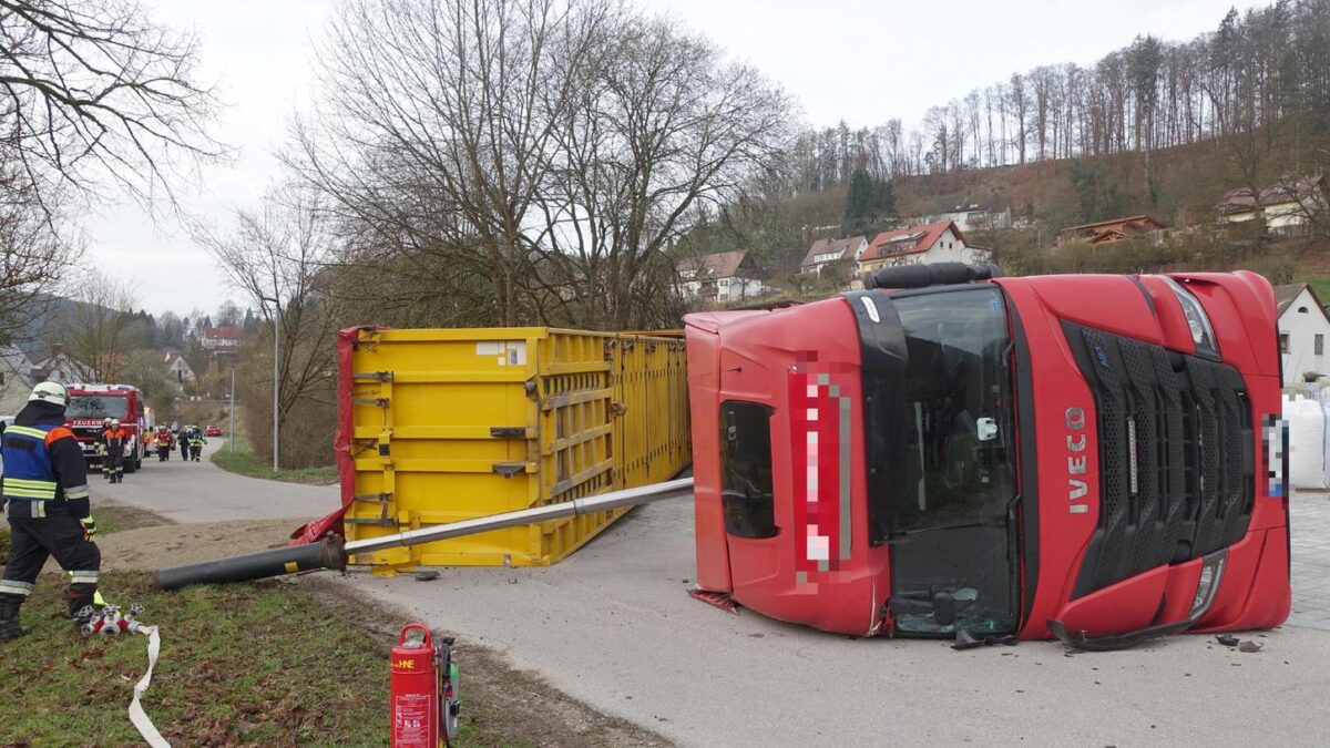 Der Fahrer trug leichte Verletzungen davon. Der Aufschlag des Containers war weithin hörbar.