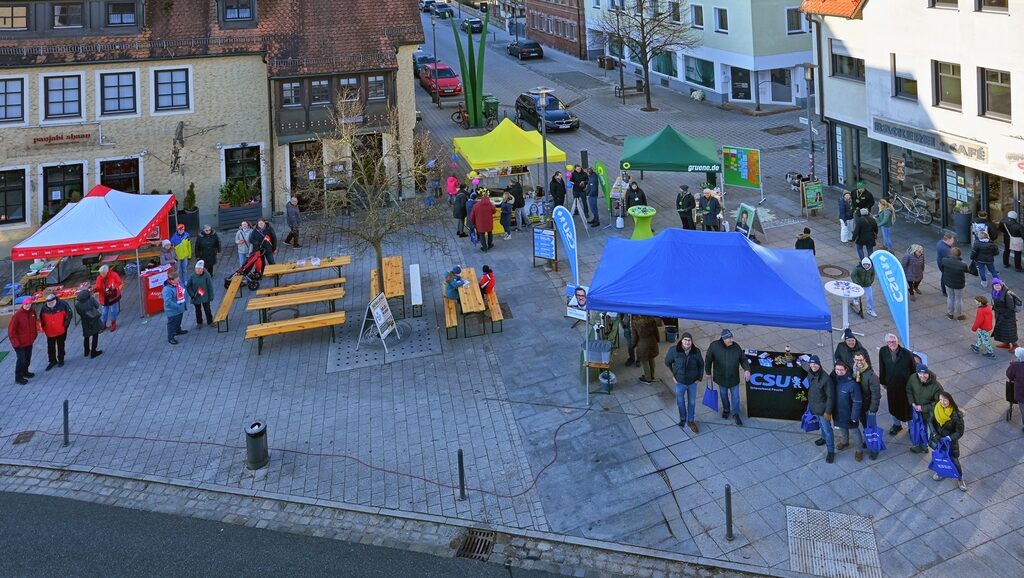 FEUCHT – Zum Hinsetzen war es angesichts der Temperaturen den meisten wohl zu kalt, es kam aber an allen Ständen zu regen Gesprächen und Kontakten mit vielen Passanten. Vertreten waren auch vier Erststimmenkandidaten des Wahlkreises Roth/Nürnberger Land: die derzeitigen Bundestagsabgeordneten Ralph Edelhäußer (CSU), Kristine Lütke (FDP) und Jan Plobner (SPD) sowie Grünen-Kandidatin Bianca Pircher.