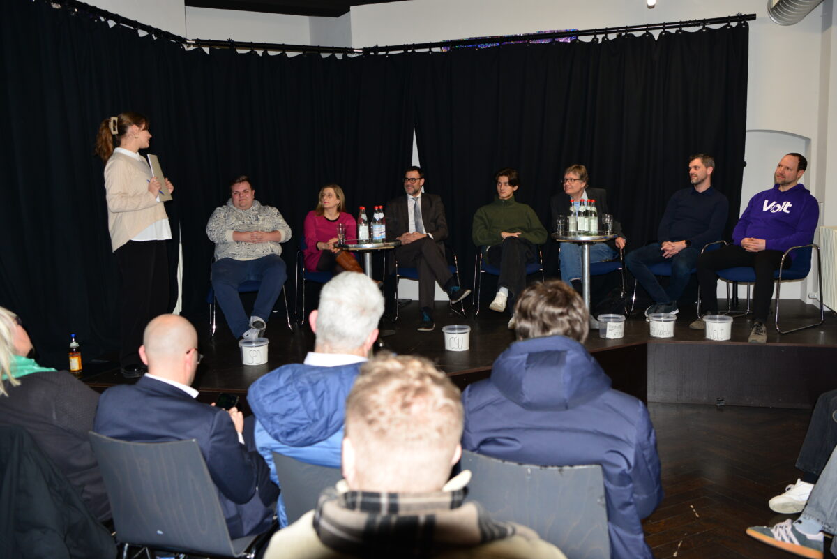 Sieben Politiker, darunter vier aktuelle Bundestagsmitglieder, stellten sich den Fragen, die der Laufer Jugendrat vorbereitet hatte: MdB Ralph Edelhäußer (CSU), der bei der letzten Bundestagswahl die meisten Erststimmen im Wahlkreis bekommen hatte, MdB Jan Plobner (SPD) und MdB Kristine Lütke (FDP), die beide über die Landesliste ihrer Partei in den Bundestag eingezogen waren, MdB Sascha Müller (Grüne) aus Nürnberg, der die Grünen-Kandidatin Dr. Bianca Pircher vertrat, Simon Zeitler (Linke) in Vertretung von Evelyn Schötz, Jürgen Joos (Freie Wähler) und Gabriel Bremer (Volt).
