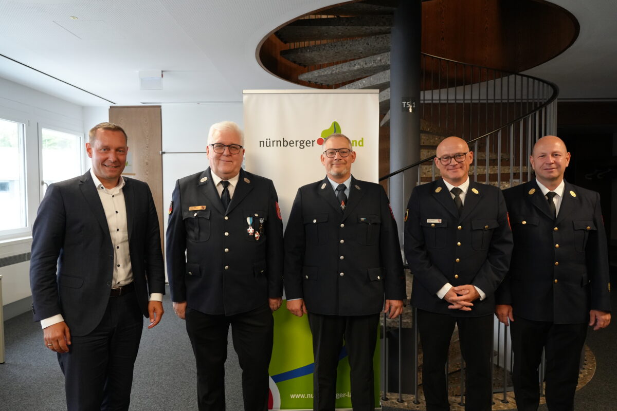 Sein Nachfolger Jens Dinstühler ist seit 2017 aktives Mitglieder der Freiwilligen Feuerwehr Reichenschwand. Er absolvierte neben der Ausbildung zum Maschinisten und Atemschutzgeräteträger auch die Ausbildung zum Gruppen- und später Zugführer. Seit dem vergangenen Jahr ist er stellvertretender Kommandant der Reichenschwander Feuerwehr. Seinen neuen Arbeitsbereich kennt Dinstühler bereits – seit 2021 unterstützt er Peter Kölbl in den Themen „IT/EDV/Cloud“. Landrat Armin Kroder würdigte in seiner Rede das langjährige Engagement Kölbls und wünschte Dinstühler für seine zukünftige Tätigkeit viel Erfolg.