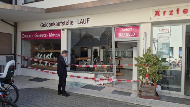Der Täter war zuvor mit einem Renault Clio ins Schaufenster des Ladens gefahren. Als eine Streife der Laufer Polizei vor Ort eintraf, stand der 30-Jährige noch mit der Beute in der Hand in dem Geschäft. „Unter Vorhalt der Dienstwaffe“, so das Präsidium, hätten ihn die Beamten festgenommen. Er habe keinen Widerstand geleistet.