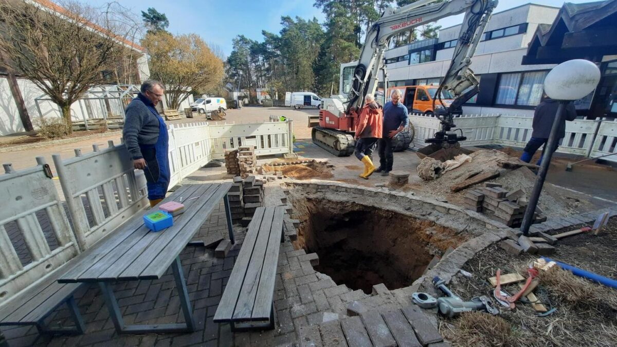 Die Mitarbeiter der Gemeindewerke rückten an, um den Schaden zu beheben. Dazu öffneten sie an zwei Stellen den Boden und zogen einen Kunststoffinliner durch das bestehende alte Rohr. „Auf diese Weise mussten nur zwei Löcher gegraben und nicht der ganze Schulhof aufgerissen werden“, ist Ballas froh. Auch wenn die Arbeiten wohl mehrere Tausend Euro kosten werden, habe dies viel Geld gespart.