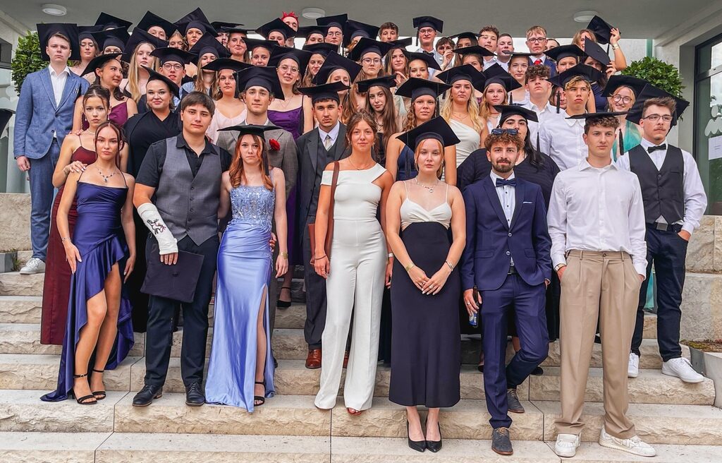 Ein Höhepunkt des Abends war nach Schulangaben eine musikalische Einlage von Bürgermeister Thomas Lang und Schulleiter Jürgen Thoma, die gemeinsam den Song „Hollywood Hills“ von Sunrise Avenue performten – inklusive eigens umgedichteter Strophen wie: „Bye Bye Monte FOS-Team“.