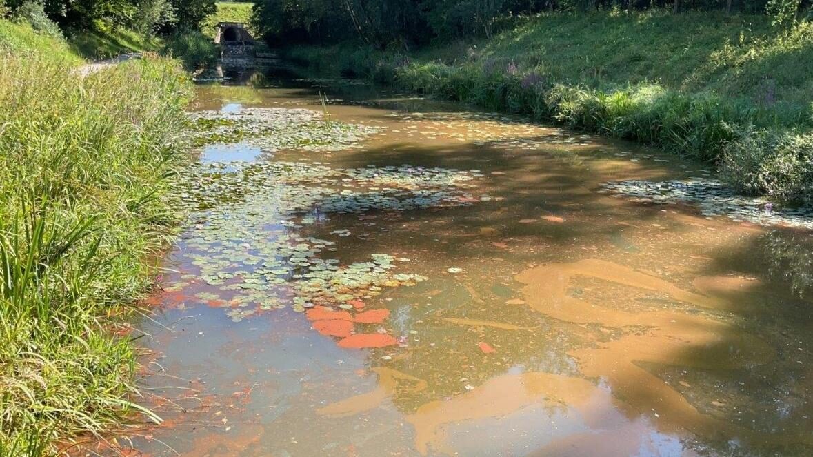 DÖRLBACH – Eine dünne rote Schicht überzieht derzeit Teile des Ludwig-Donau-Main-Kanals zwischen Rübleinshof und Dörlbach. Das Wasserwirtschaftsamt Nürnberg hat in diesem Bereich aktuell Wasserproben genommen und im Labor untersucht.
