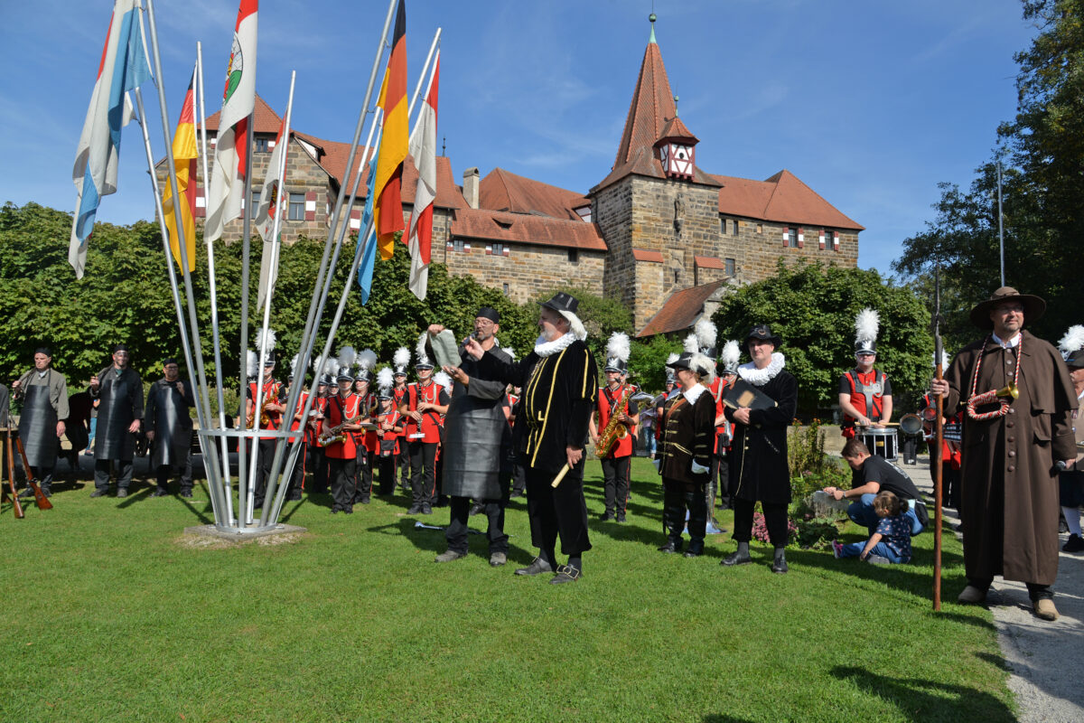 LAUF – Wenn der Laufer Bürgermeister in das Kostüm des Stadtpflegers schlüpft, kann das nur eines bedeuten: Es findet wieder der „Rußigen Aidt“ im Rahmen der Hämmernkirchweih statt. Das beliebte Schauspiel vor der Wenzelburg wurde von vielen Zuschauerinnen und Zuschauern aus Lauf und der Umgebung verfolgt.