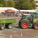 Die Teilnehmer beim Geschicklichheitsfahren hatten acht Minuten Zeit, um mit einem Fendt 313 Vario geschickt und mit möglichst wenig Fehlerpunkten einen Hindernisparcours abzufahren. Die Aufgaben dabei unter anderem: Rückwärts rangieren, Schüttelrampen und Slalompylonen über- oder umfahren und dabei immer schön darauf achten, dass die „Milchkanne“ auf dem angehängten Wagen (mit Fahne) nicht umfällt. Dafür hätte es sonst Extrastrafpunkte gegeben.