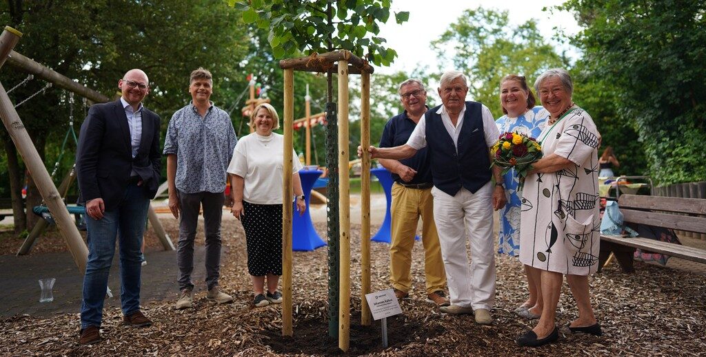 SCHÖNBERG – Für sein jahrzehntelanges Engagement für Kinder mit Behinderung hat sich die Lebenshilfe Nürnberger Land bei Johannes „Hans“ Kalbus revanchiert. Zu Ehren des 92-jährigen Gründers der Hagenhausener Rosengärtnerei Kalbus haben Schüler der Bernhard-Leniger-Schule eine Linde auf dem Pausenhof des Förderzentrums in Schönberg gepflanzt.
