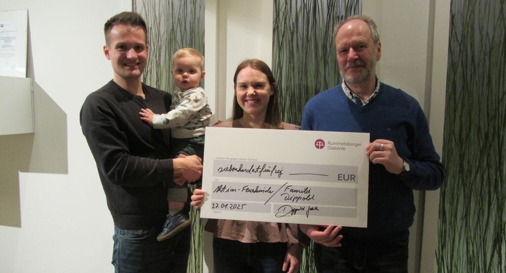 Familie Dippold bei der symbolischen Scheckübergabe an Diakon Mathias Kippenberg. | Foto: Rummelsberger Diakonie2025/02/04ad0c2f69f5fd51282228d90ffdd712cbbbca0c_max1024x.jpg