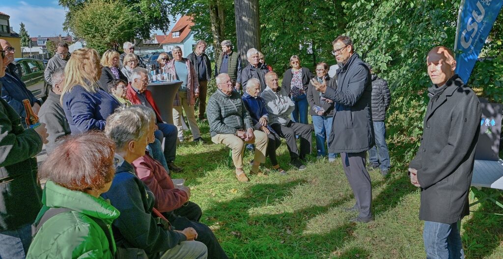 FEUCHT – Viele Teilnehmer am Festakt der Feuchter CSU an der Einheitslinde in der Wiesenstraße hat Vorsitzender Harald Danzl begrüßen können. Nach einem kurzen Rückblick auf die Pflanzung der Linde am 3. Oktober 1990 und das Anbringen eines Findlings mit Gedenktafel zum 3. Oktober 2000 erinnerte er an das Zustandekommen der Deutschen Einheit, auf das dann auch der Festredner, Bundestagsabgeordneter Ralph Edelhäußer, einging.