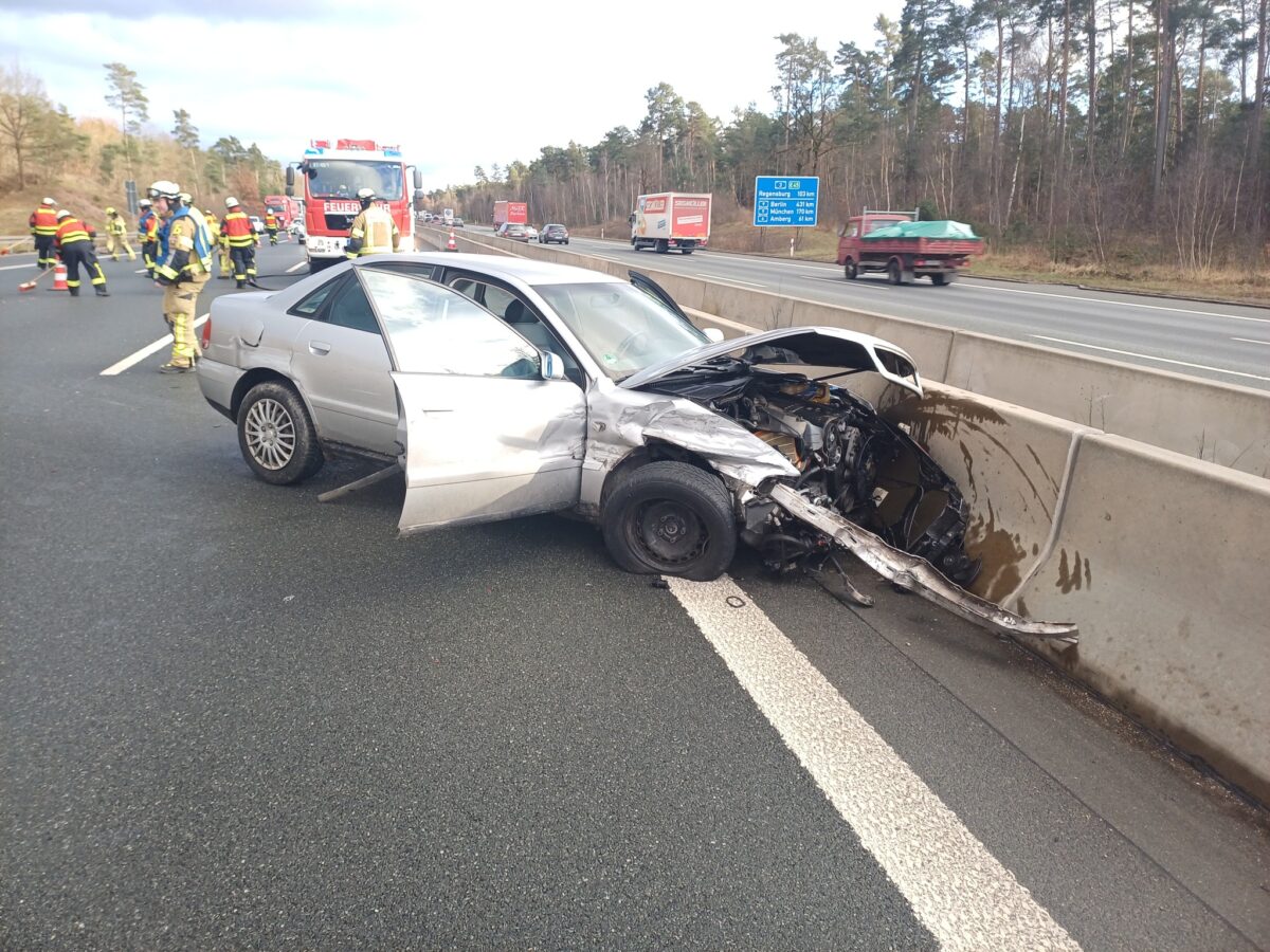 Am Mittwochnachmittag kam ein Senior mit seinem Fahrzeug auf der A3 nahe Behringersdorf ins Schleudern, traf einen Lkw und krachte in die Mittelschutzplanke.