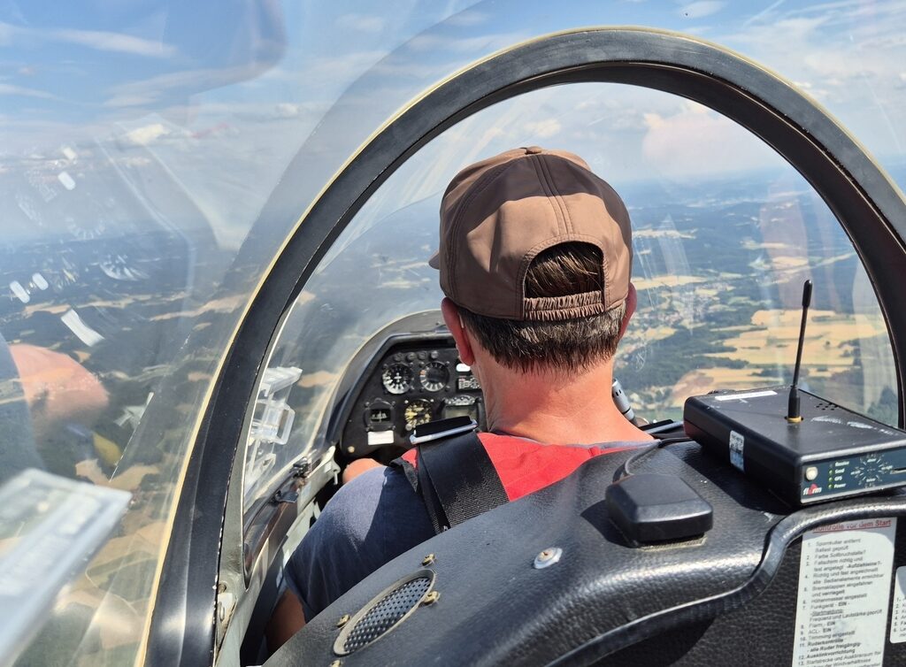 Am folgenden Wochenende dann der Höhepunkt: Bei schönem Wetter hoben die Piloten ab und absolvierten ihren ersten Segelflug, bei dem sie vom vorderen Sitz aus zeitweise das Flugzeug selbst steuern durften. Nach einer Mittagspause gelang mit etwas Thermik sogar der ein oder andere längere Flug, bei dem die Steuerung ausprobiert und das Fliegen ausgekostet werden konnte. Auch das Kreisen war gar nicht so schwer.