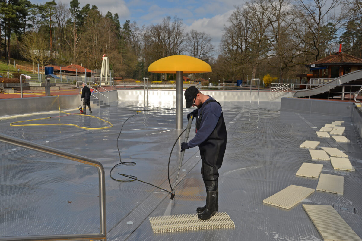 LAUF – Zwar öffnet das Laufer Freibad voraussichtlich erst am 13. Mai seine Pforten für die Gäste. Doch für die Mitarbeiterinnen und Mitarbeiter haben die Arbeiten längst begonnen. Schon seit der letzten Februarwoche bereiten sie hinter den Kulissen alles für eine gelungene Badesaison vor.