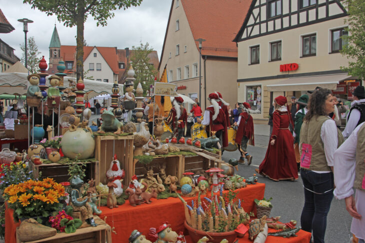 Normalerweise tummeln sich Gäste in der Innenstadt, an den Essens-, Handwerks- und Kunstständen, in den Läden und im Zeidelmuseum. Hinzu kommen Umzüge, Ritterturniere, Kinderanimation und weitere Indoor- und Outdooraktionen. Alles in Kooperation mit verschiedenen Vereinigungen aus der Umgebung, wie zum Beispiel dem Wallensteinfestspielverein, Akteuren der Eppelein-Festspiele aus Burgthann und dem örtlichen Bund Naturschutz. Kontakt sei an diesem Wochenende einfach unvermeidbar. Denn neben der Vermittlung der Feuchter Geschichte habe die Veranstaltung am verkaufsoffenen, ersten Sonntag im Mai auch wirtschaftliche Vorteile. „Wir wollten von Anfang an Geschichte, Spaß und gewerbliche Optionen verbinden“, sagt Hommel.