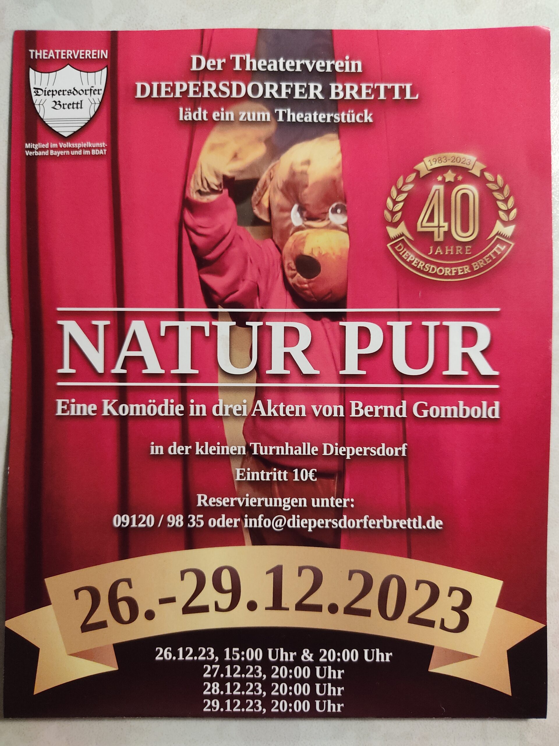 Grundschule Diepersdorf , kleine Sporthalle Diepersdorfer Hauptstraße 38, Leinburg, DEDer Theaterverein Diepersdorfer Brettl e.V. zeigt Ihnen die unterhaltsame Komödie "Natur pur" von Bernd Gombold