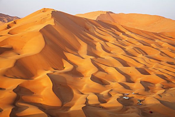 Im Norden bricht das wilde Hadschar-Gebirge von über 3000m Höhe mit spektakulären Felswänden in eine fjordähnliche Landschaft steil ins Meer ab. Im Süden dehnen sich über hunderte von Kilometern endlose einsame Sandstrände aus, während im Landesinneren karge Wüstenlandschaften mit dominieren. Im Zentrum liegt mit der Rub al-Chali die größte reine Sandwüste der Welt.