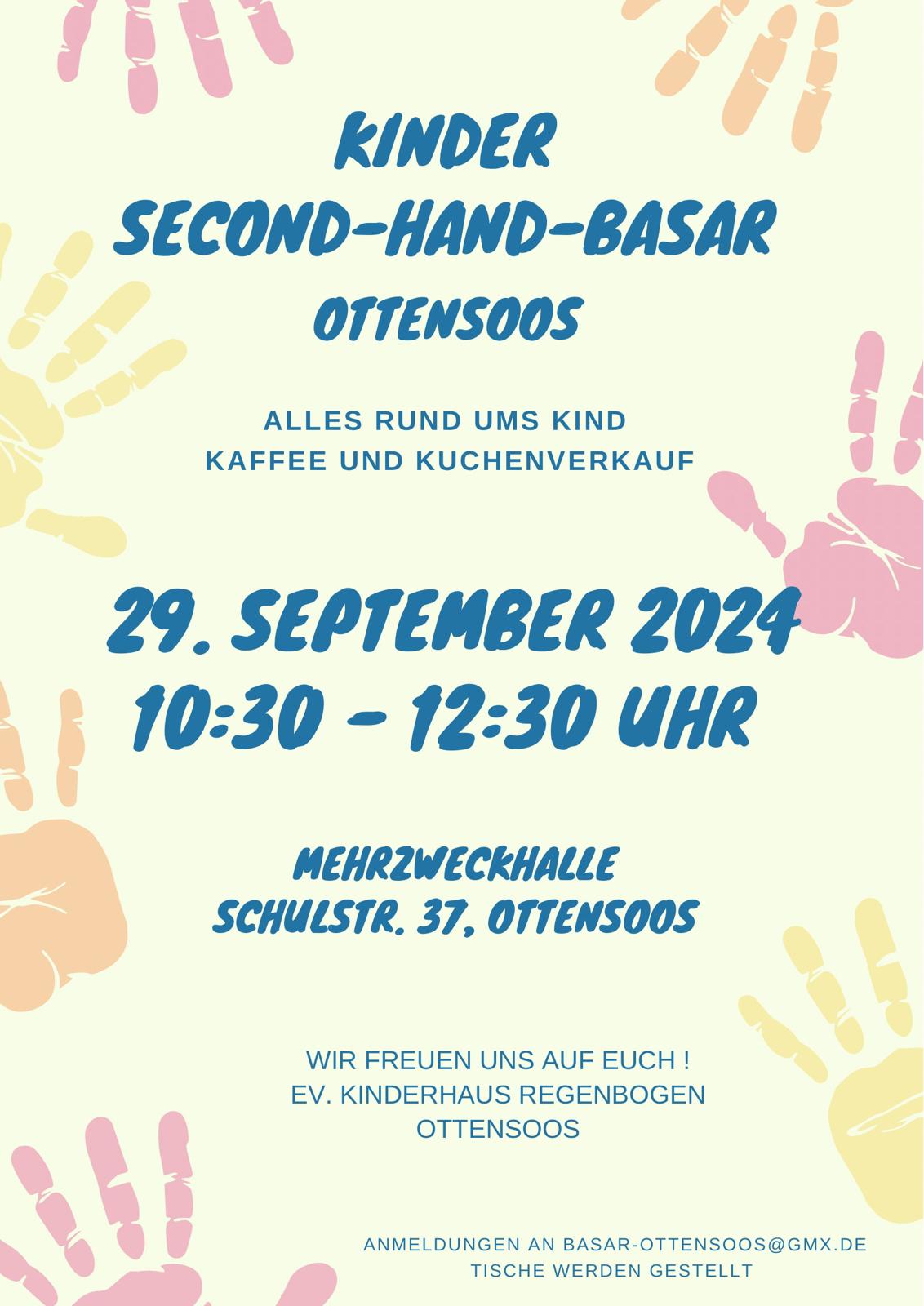 Mehrzweckhalle Ottensoos Schulstr. 37, Ottensoos, DEVerkauf von gut erhaltener Kinderbekleidung, Spielzeug und weiterem Kinderbedarf. Kaffee- und Kuchenverkauf (auch zum mitnehmen) Eintritt frei! Kontakt für Tischbuchungen und Fragen: [email protected]