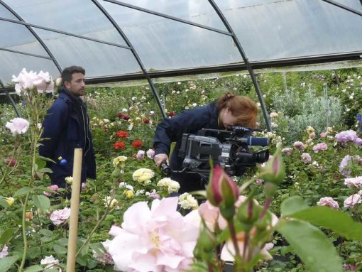 Mehrere Kabel zwischen den Blumenbeeten, Kameras mitten im Gewächshaus, eine Gruppe von Leuten in blauen Jacken, die diskutierend durch das Gelände streifen. Familie Kalbus und ihre Mitarbeiter sind im Stress. Sie muss sich nebenbei noch um den Laden kümmern. Er hat die englische Rosengesellschaft „The Royal National Rose Society“, die extra aus England und Dänemark angereist ist, durch die Vielfalt der Rosen zu führen.