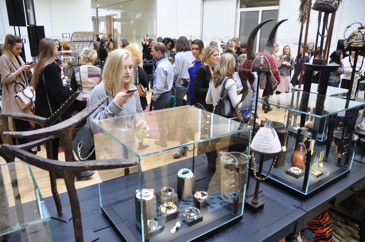 Die neue Sabo-Kollektion, von Uhren über Ohrhänger bis zu den Ringen in Silber aber auch in Gold, steht wie schon die Herbstkollektion unter der Botschaft „Togetherness“, wie Kindermann kurz erzählte. Liebe, Leidenschaft oder Toleranz sollen die Schmuckstücke ausdrücken. Inspiriert wurde die Frühjahrskollektion durch die Kultur Afrikas. Entsprechend mit Stammeszeichen, Schnitzereien oder farbigen Textilien dekoriert präsentierte sich das große Atrium rund um die Vitrinen mit dem Schmuck.